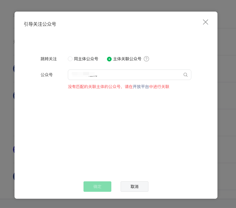 不同主体小程序和公众号,同时绑定开发平台,为啥小程序绑定扫不到该公众号?文档里说设置的公众号需与小程序为同主体或关联主体。我们已经在微信开放平台中关联了小程序和公众号,应该就属于关联主体了吧?https://developers.weixin.qq.com/miniprogram/dev/component/official-account.html