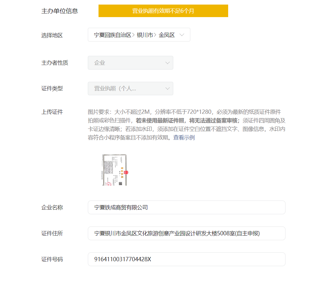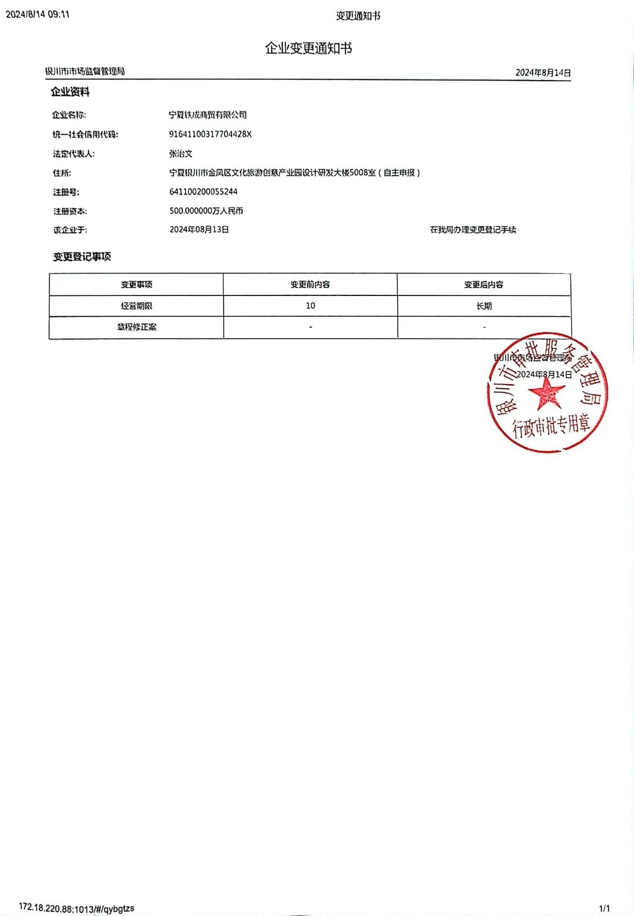 宁夏铁成商贸有限公司,营业期限已经更改为长期
