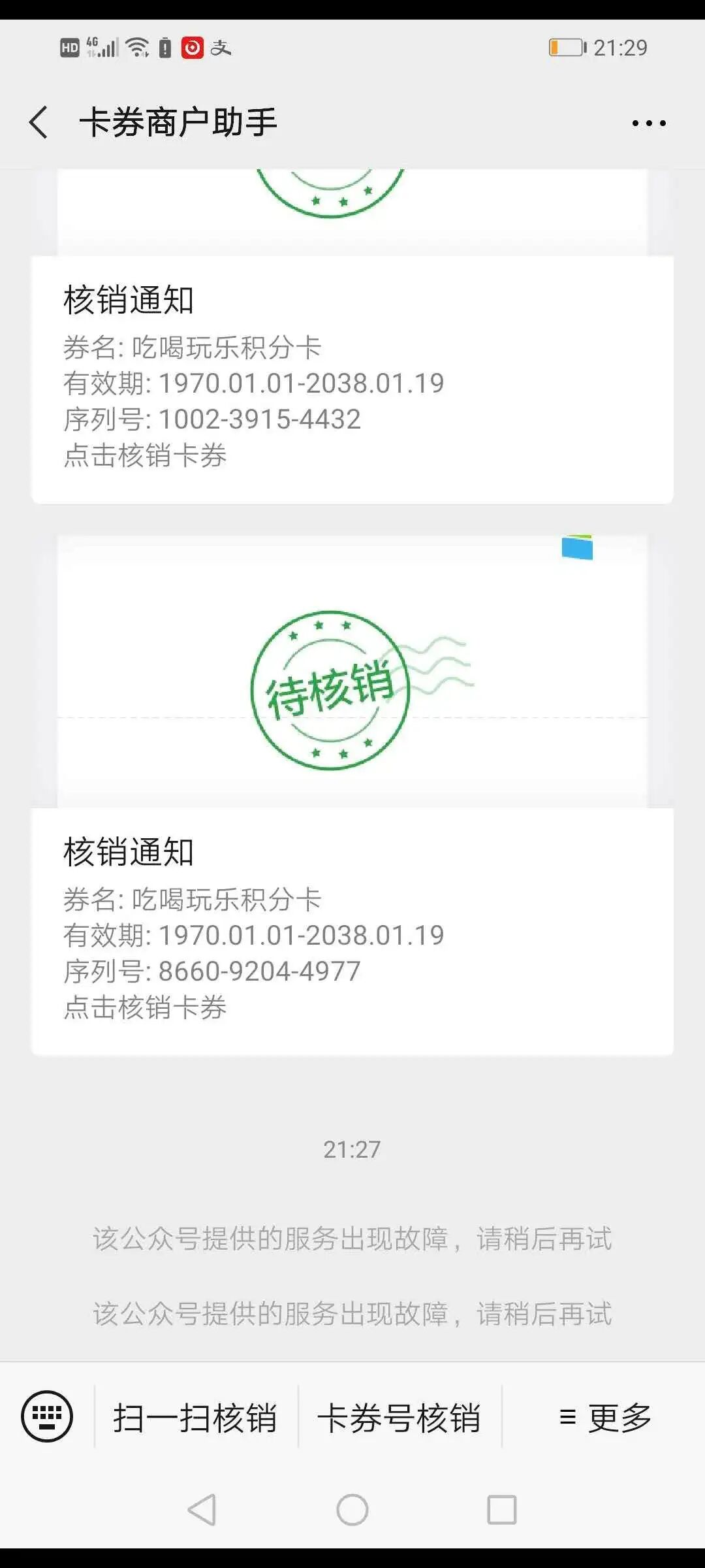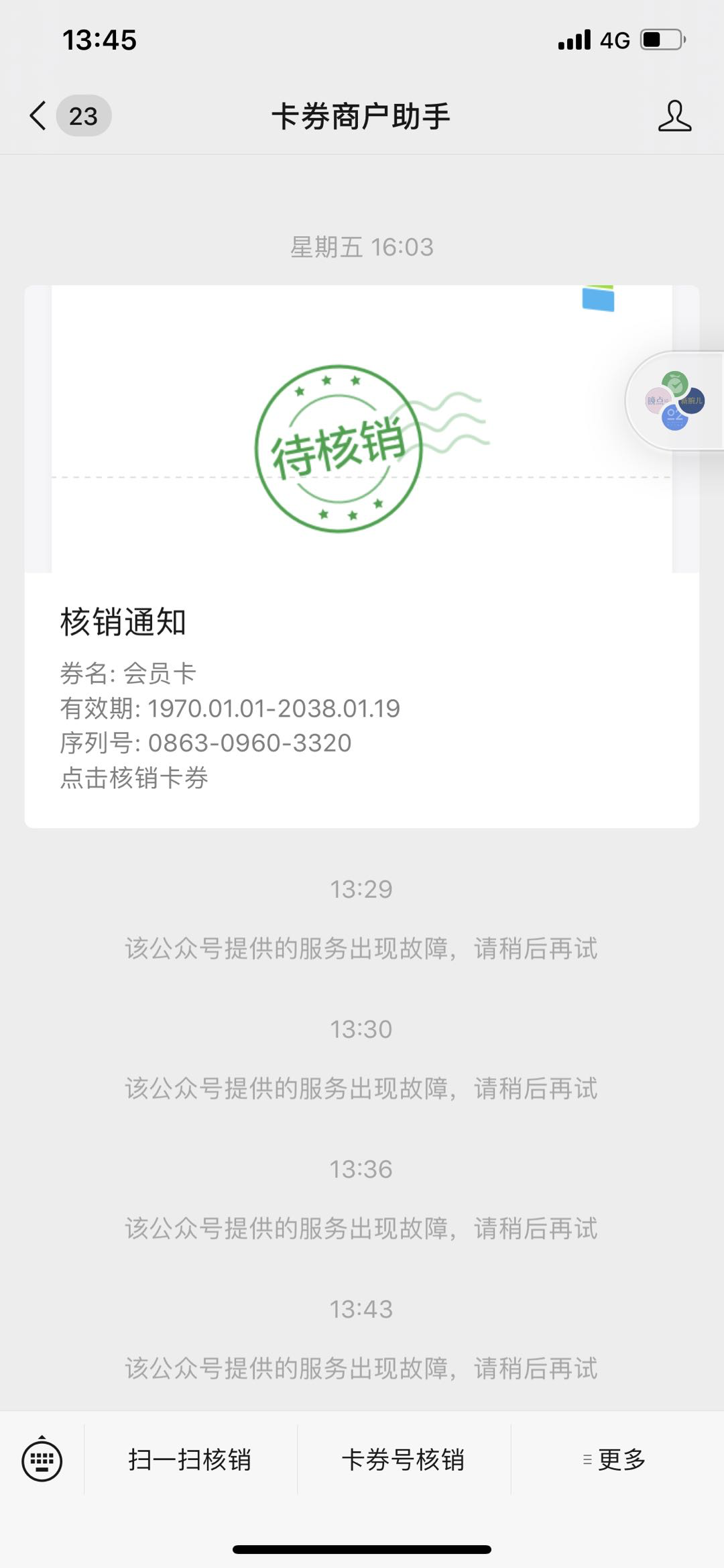 昨天开始,卡券商户助手的扫一扫核销功能不能用了,有大佬直到怎么回事吗?官方也没出通知啊。。。。!