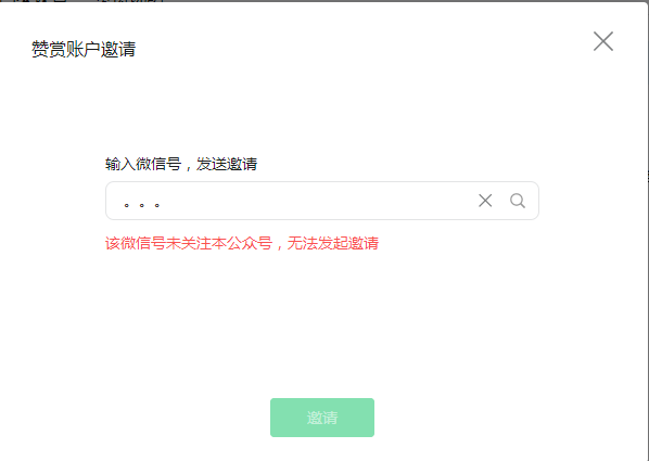 我的微信公众号有申请赞赏的邀请,一但打开邀请微信就不能申请了,那个“邀请“”是灰色的