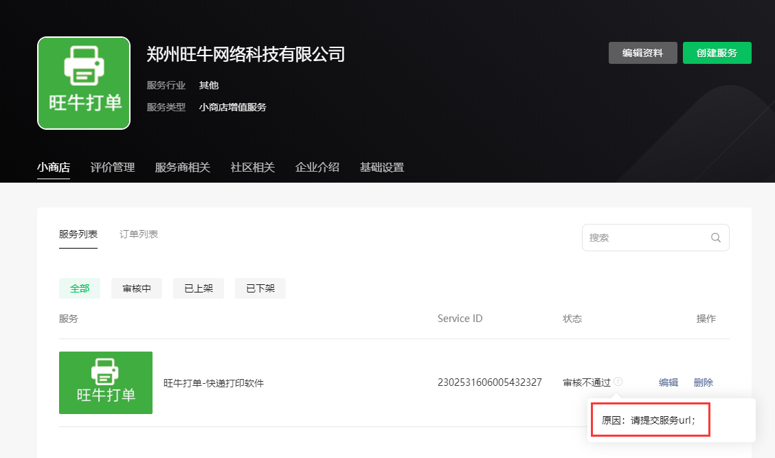 你好,需要提供的是服务url,即点击进去直接进入管理后台,然后可以体验自动授权测试小商店,可以体验各项功能