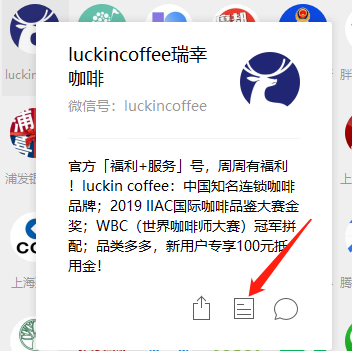 2、点开你需要的公众号头像,如下图(这里我们拿瑞幸咖啡公众号为例):