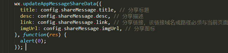 link: '', // 分享链接,该链接域名或路径必须与当前页面对应的公众号JS安全域名一致