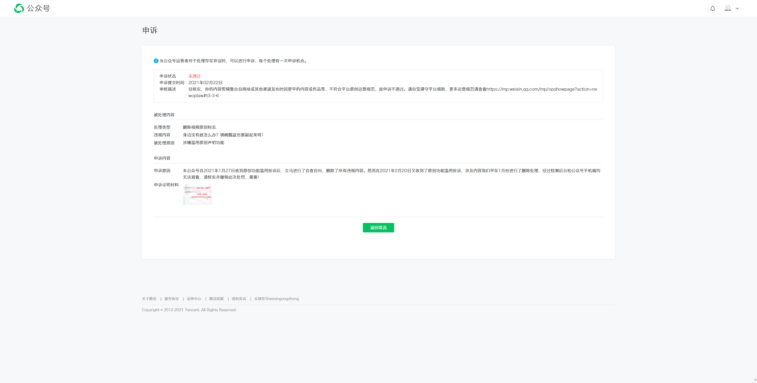 补充:第二次申诉失败内容和截图
