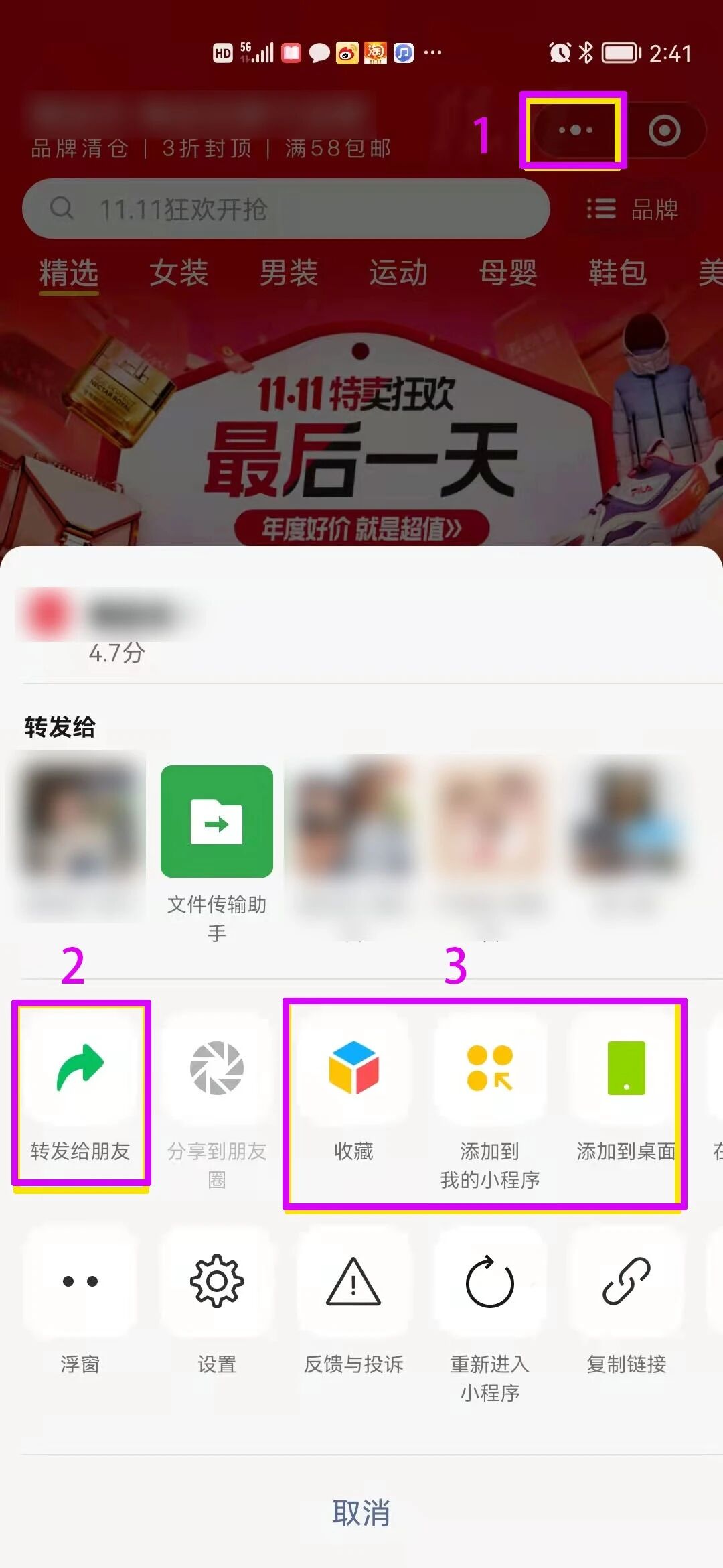 3,点击收藏功能可以触发事件:https://developers.weixin.qq.com/miniprogram/dev/reference/api/Page.html#onAddToFavorites-Object-object