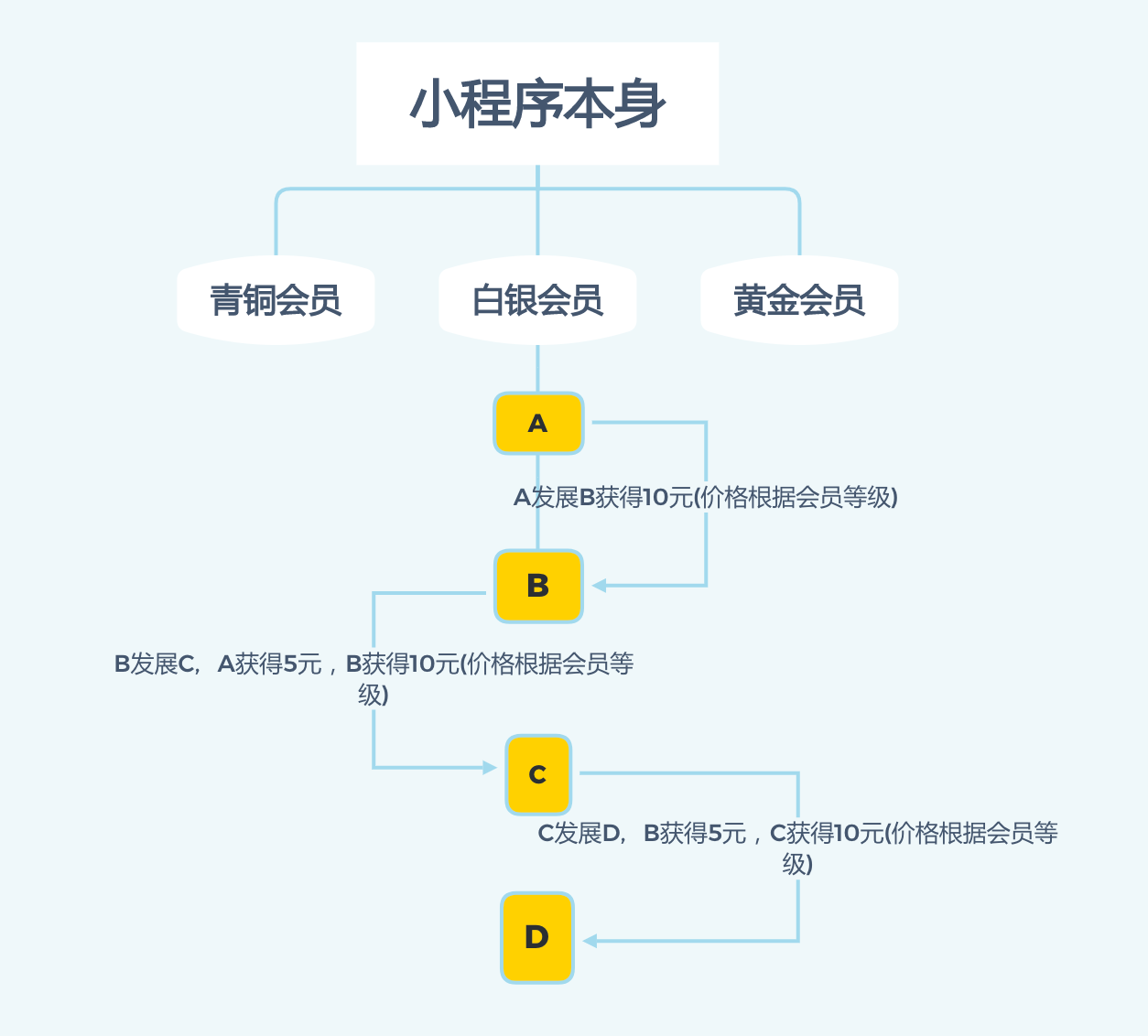 小程序到会员就是二级分销了,后面的ABCD都是违规的