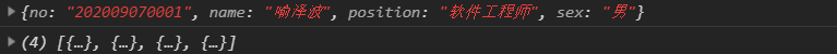第一个数组只有一个对象但是循环的时候按照的是他的字段数来循环的,循环了四次,而第二个数组四个对象是正常循环四次