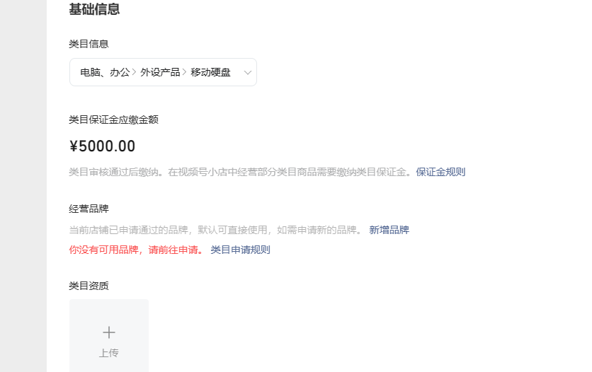 请问这是为什么呢,一直申请开通移动硬盘的类目或者存储卡的类目,一直开不了,品牌审核的申请已经通过了,却迟迟开不了,说没有可申请的品牌。