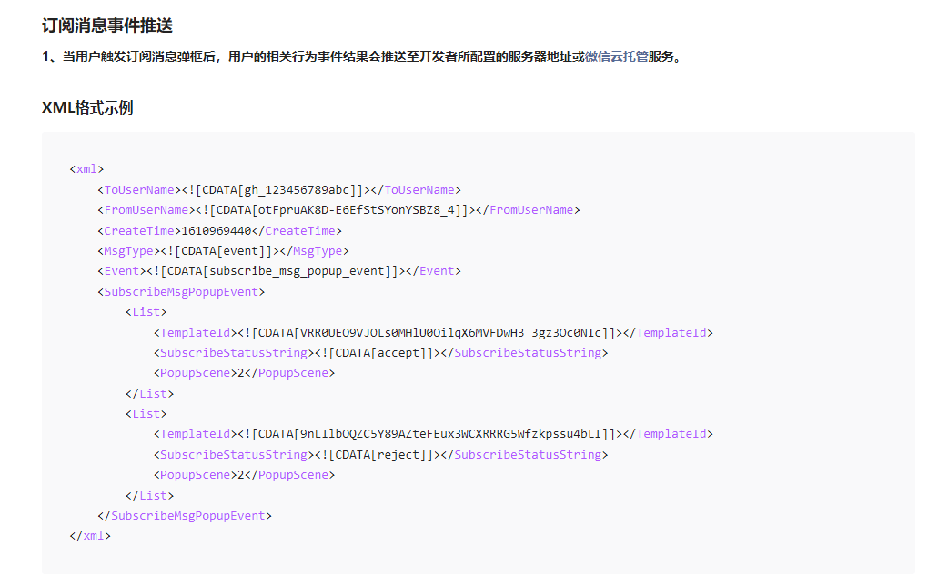 你好,请订阅消息接口回调或者事件推送进行排查:https://developers.weixin.qq.com/miniprogram/dev/api/open-api/subscribe-message/wx.requestSubscribeMessage.html
