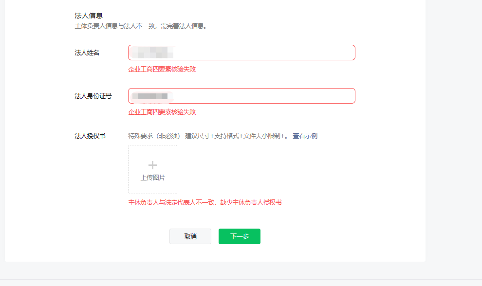 但是填写一个中国人的信息,提示的错误为:主体负责人与法定代表人不一致,且备案所在地不支持法定代表人授权?