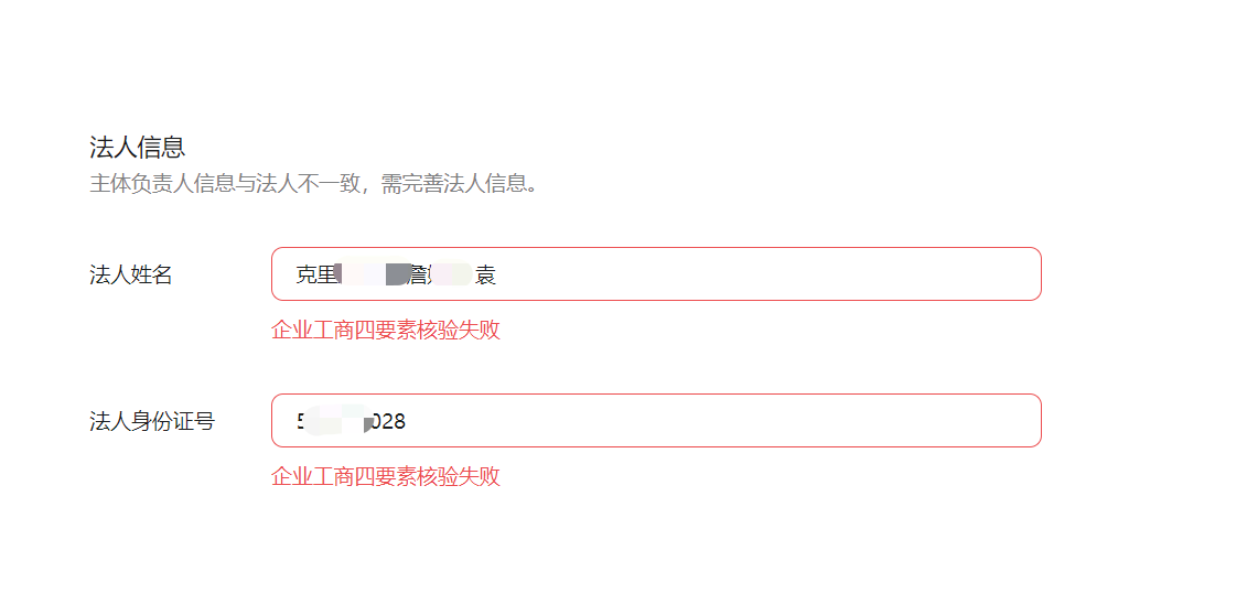 我本人是外国人,又是公司的法定代表人。我填写备案信息表的时候选择证件类型为护照,但是提示错误:企业工商四要素核验失败
