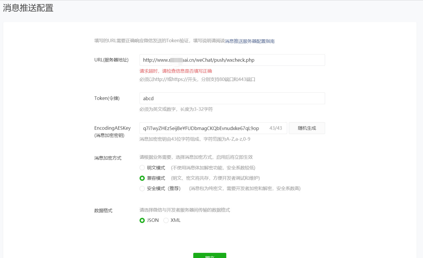 你好,请问解决了吗,我也碰到这个问题,请求超时,请检查信息是否填写正确,URL能访问的