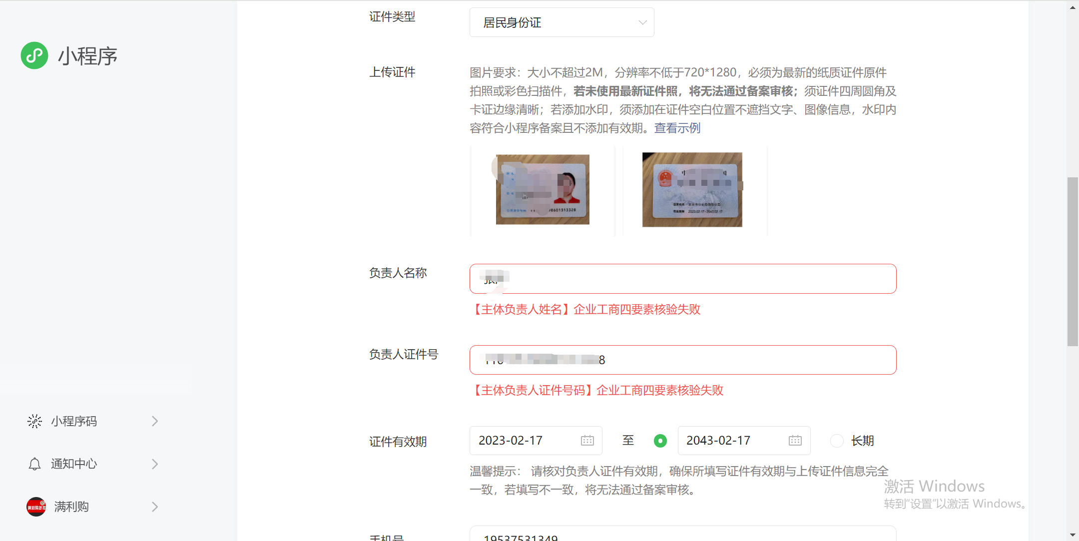 备案中显示 “企业工商四要素核验失败”,找不到问题