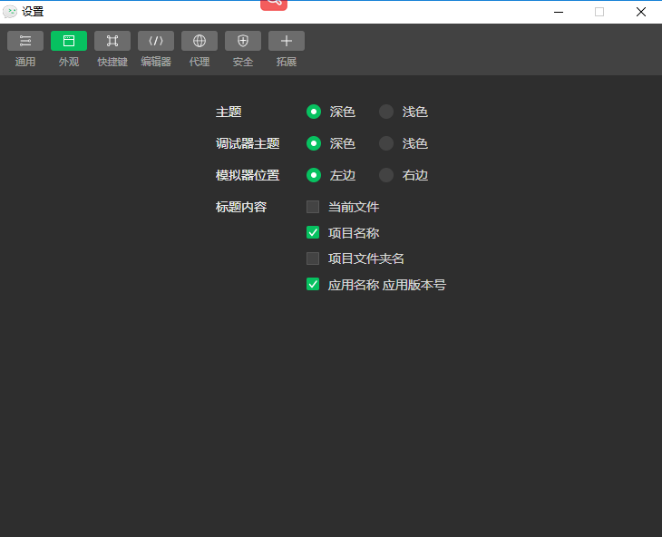 你好,可以使用鼠标点击上方设置->外观设置 可以更改主题、调试器主题为深色。