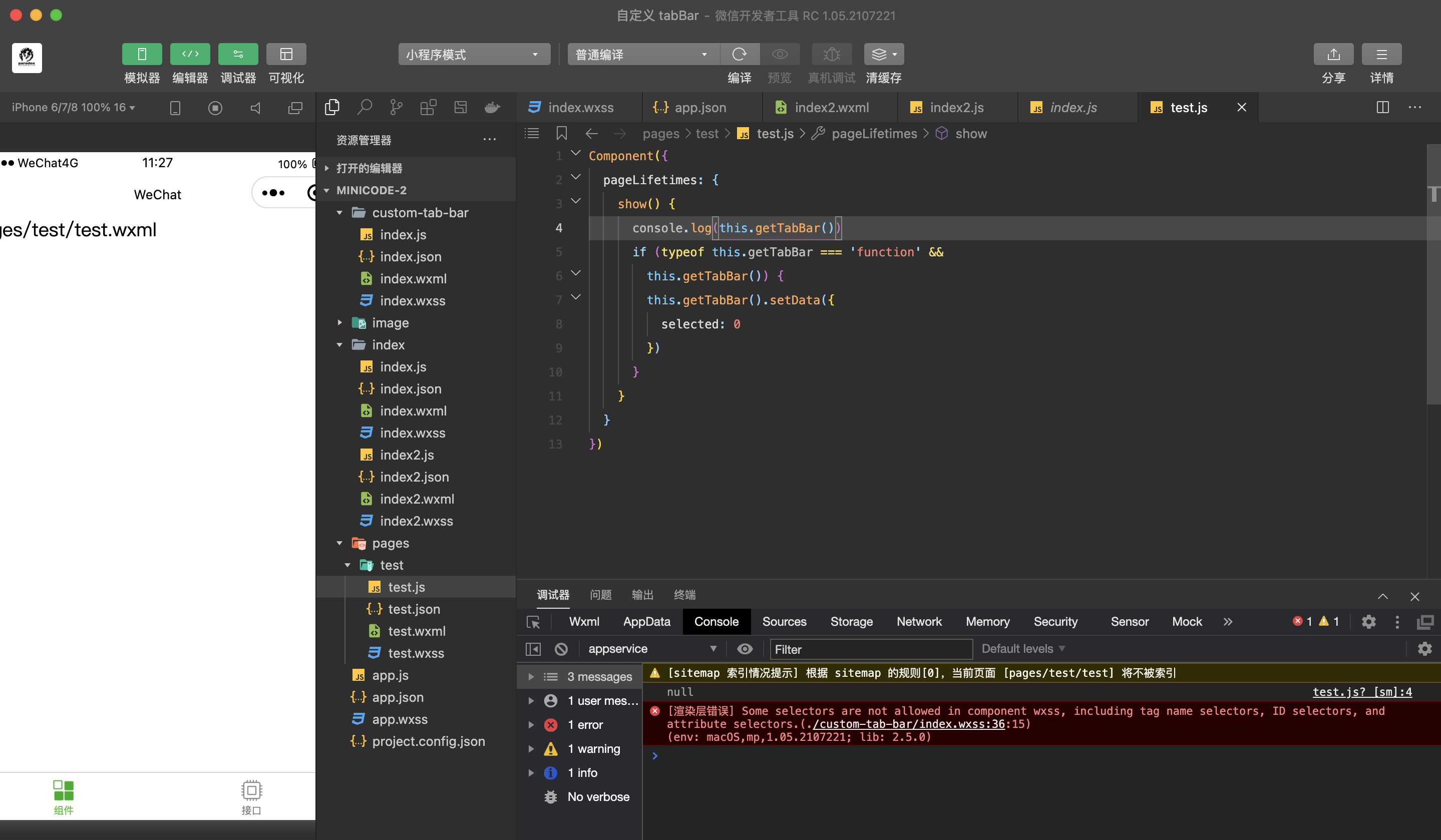 你这个是在组件中 getTabBar?在页面onLoad或者onShow中获取this.getTabBar()从来没遇到这种情况。