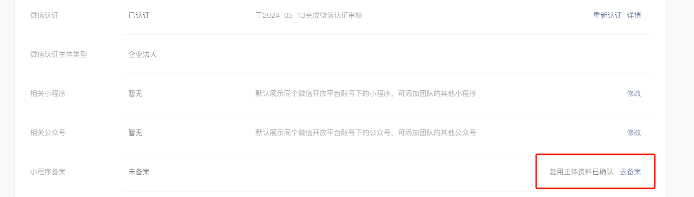 然后目前又没有修改入口,因为是复用了公众号的主体资料