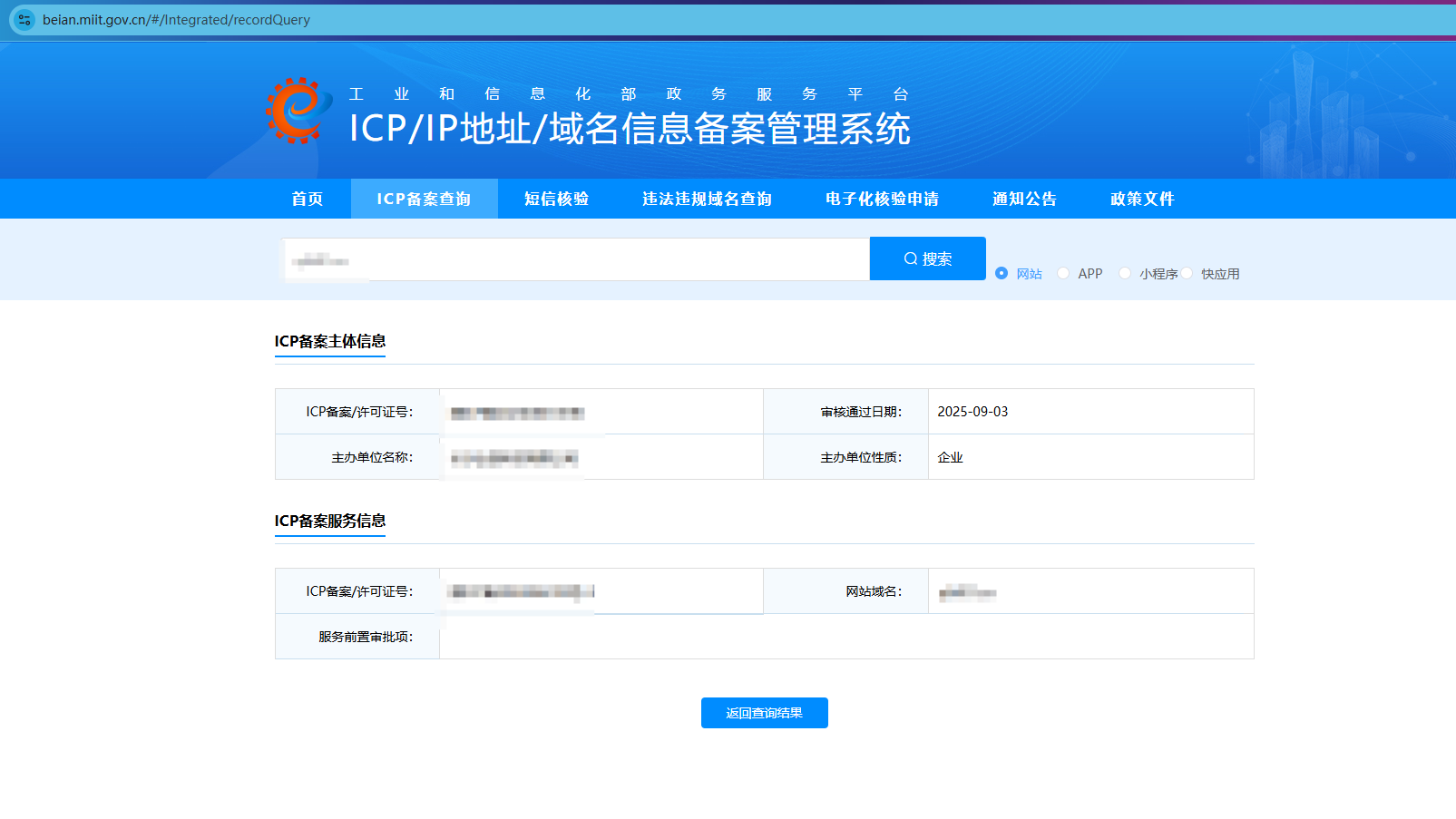 域名: 如下图(备案情况,出于安全原因已打码,请微信官方人员看到后私聊我)