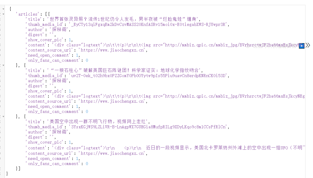 新增永久图文素材报错