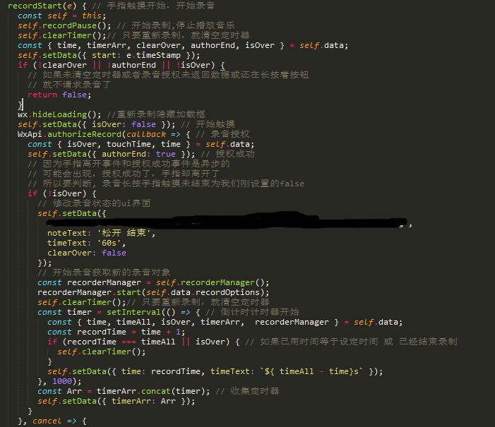 模拟长按事件,手指离开时又快速点击,正在录音的按钮,页面循环报错无响应,整个小程序卡无响应~