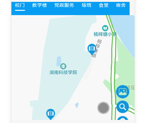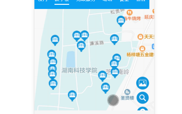 首先选择“校门”随后选择教学楼在模拟显示是这样的真机调试,选择第二个“教学楼”时却把第一个的也显示了。