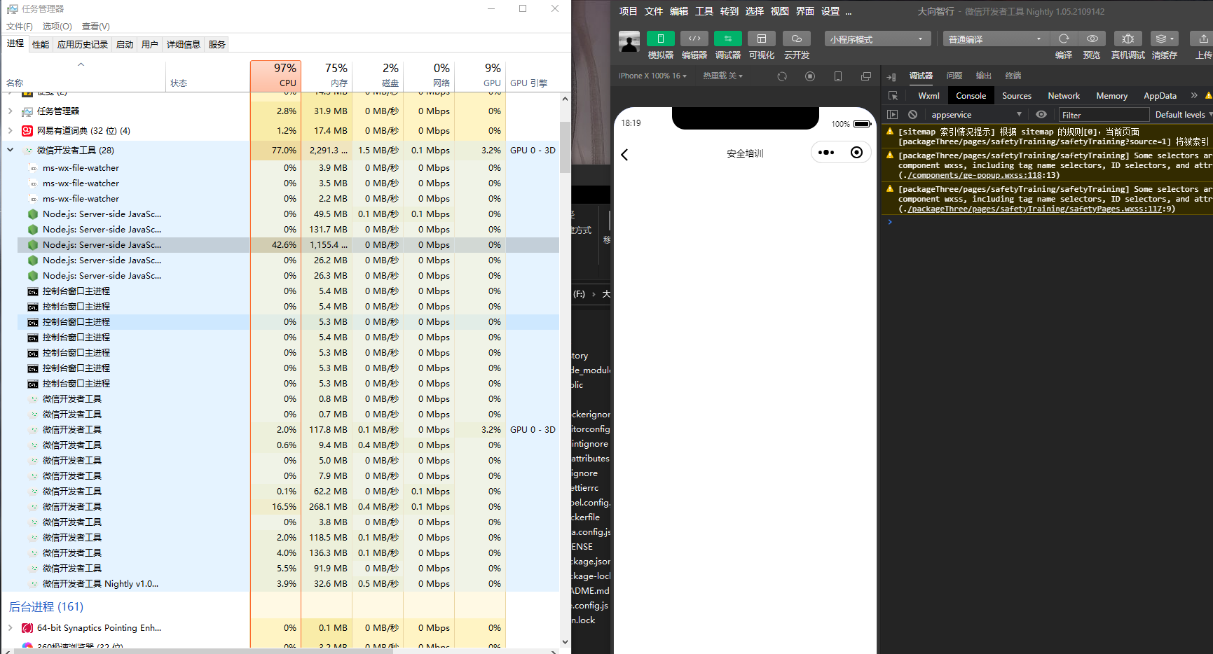 一般是代码逻辑比较复杂,首先我们电脑在某些情况是不如手机的,电脑的开发者工具 一边要编译解析代码,一边要给你渲染模拟器,还可以写代码 或者做一些其他操作,占用高肯定很正常,如果你编译结束后还是这么高的占用,排除代码业务一直在运转的情况,那就是硬件设备过老或者过旧了(手动滑稽)。我编译的时候基本占用20-50之间,不过我电脑也不是啥好电脑。