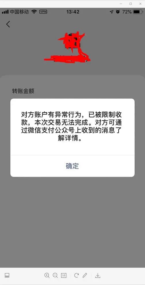 您的账户近期涉嫌违规(非法传销、赌博、诈骗等)交易,已被限制部分收款功能,请注意合法使用账户,账户将稍后或在第二天恢复正常使用。