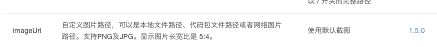 如果分享imageUrl图片是横图,则长边完全显示;如果分享图片是长图,则短边完全显示,且只显示顶部位置区域。