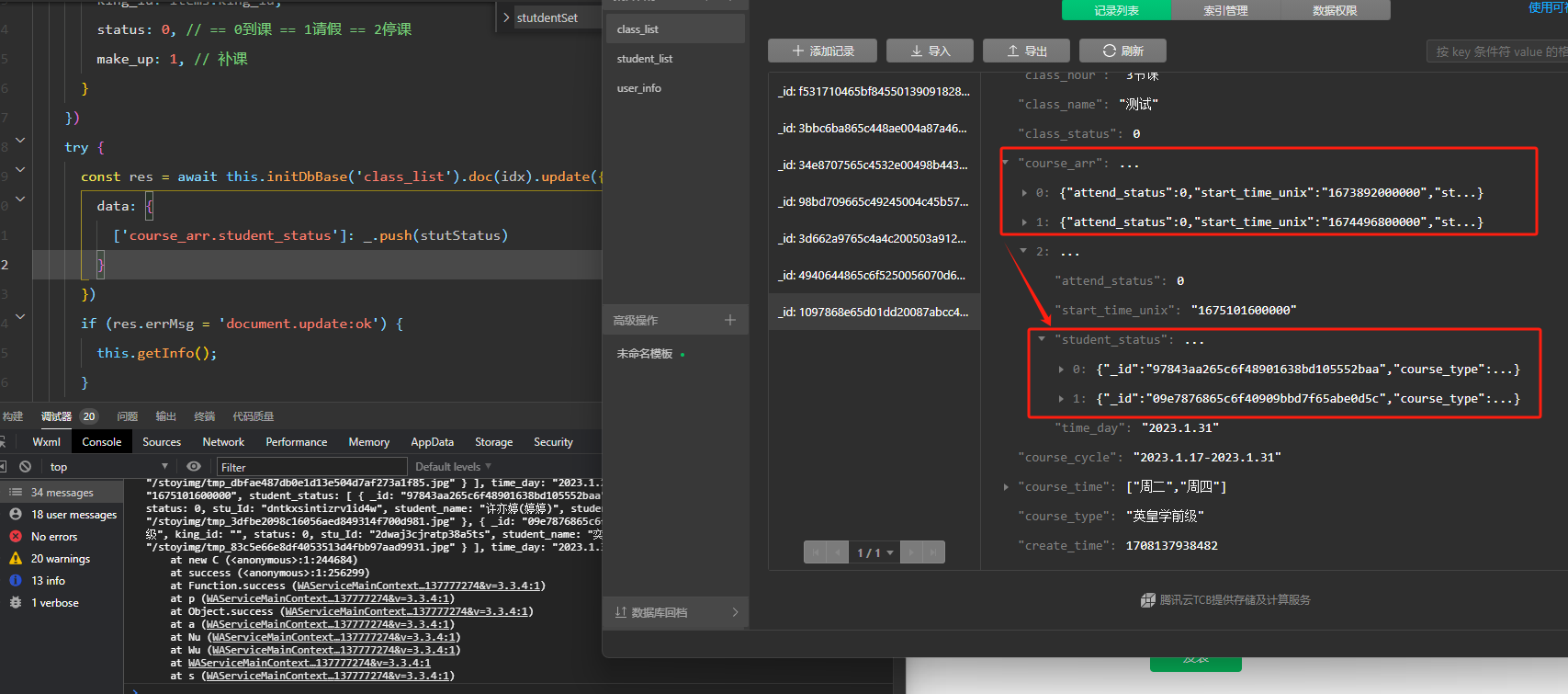 想在数组course_arr下的每个student_status追加一个新的数据 可是_.push() 直接追加报错