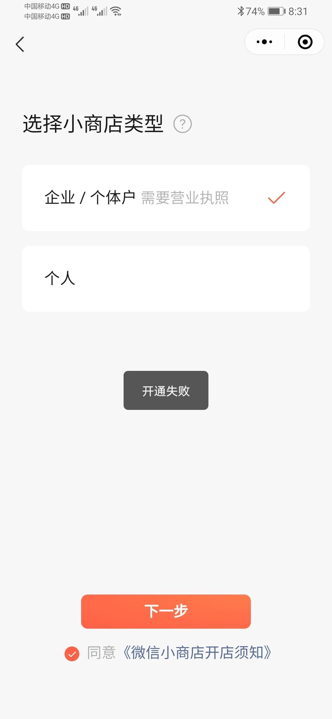 你好,我收到了微信小商店的内测邀请,但是申请时却提示开通失败。请问是怎么回事?