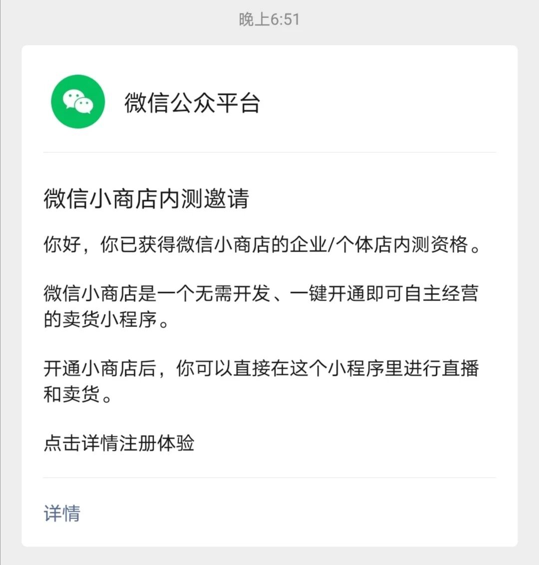 我收到微信小商店内测邀请,但是最后面没有留详情的链接,我无法进入,请处理。
