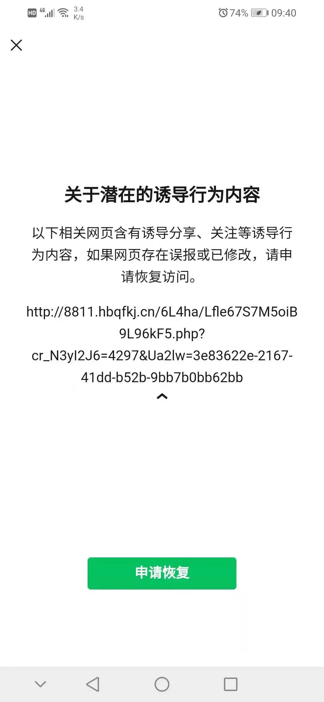 域名是:www.hbqfkj.cn,莫名其妙被微信拦截。点申请恢复访问,显示如下8811.hbqfkj.cn/....,但是这个网页并不存在,我网站根本没有这个网页,而且这个网页也不通的。操作了几次申请恢复,都被告知不通过。期间试过重装云服务器系统(客服怀疑网站被入侵301跳转),问题仍然存在。腾讯云那边域名服务商说是微信这边的问题。不清楚具体是哪里的问题,怎么查看具体的问题?
