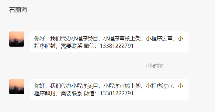 在我的小程序被封了页面之后和警告之后,我收到的是这样的私信,我理解这是一个勒索行为