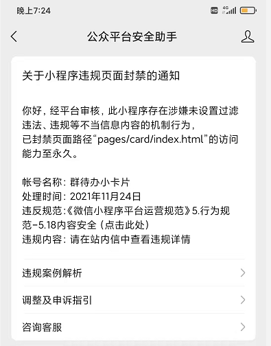 基本可以判定,即便解封,我的小程序也已经game over了,别说7天,不出3天,用户就流失殆尽了。