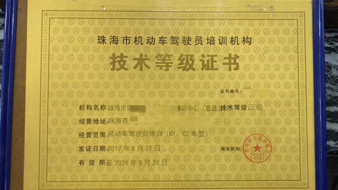 请问没有《道路运营许可证》,有一张《珠海市机动车驾驶员培训机构技术等级证书》可以申请驾驶培训类的小程序么?