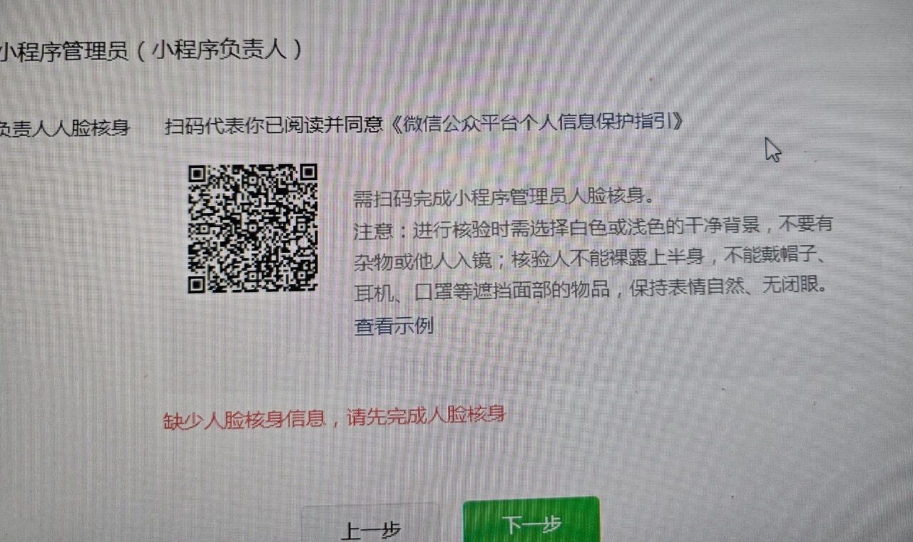 小程序备案时 到负责人人脸核身 扫码人脸识别时一直提示请再靠近一点 然后就显示超时为什么?