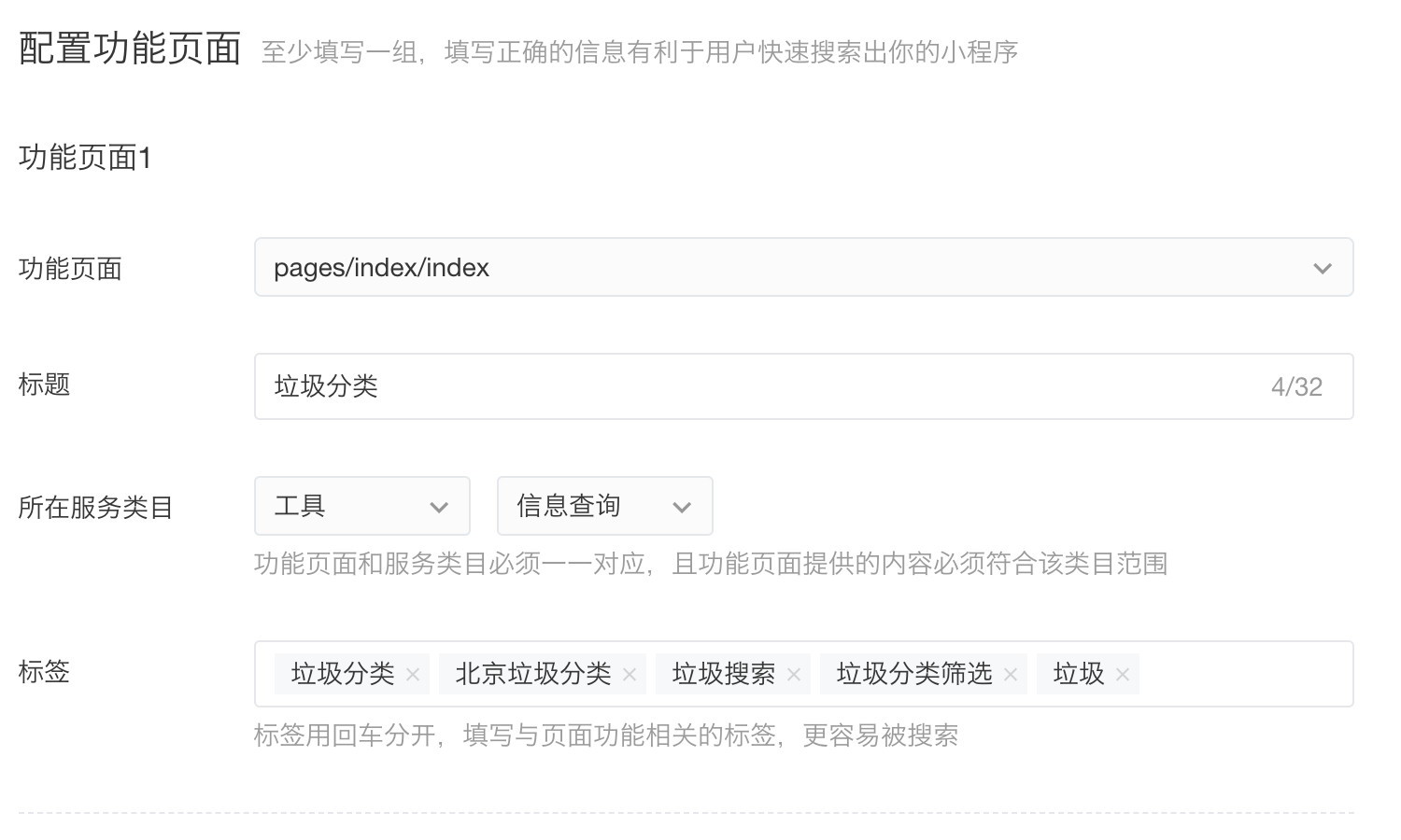 发布的时候 输入你的小程序的模糊内容 就可以了