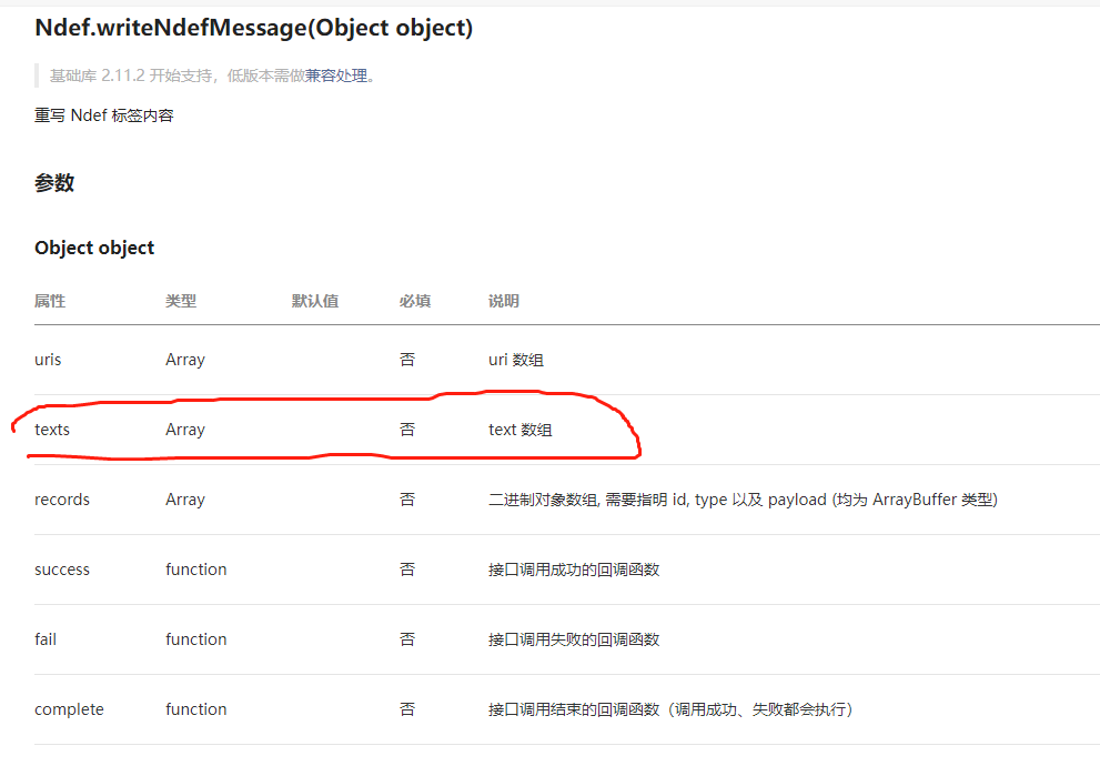 writeNdefMessage err=> {errMsg: "writeNdefMessage:fail:invalid parameter", errCode: 13011}