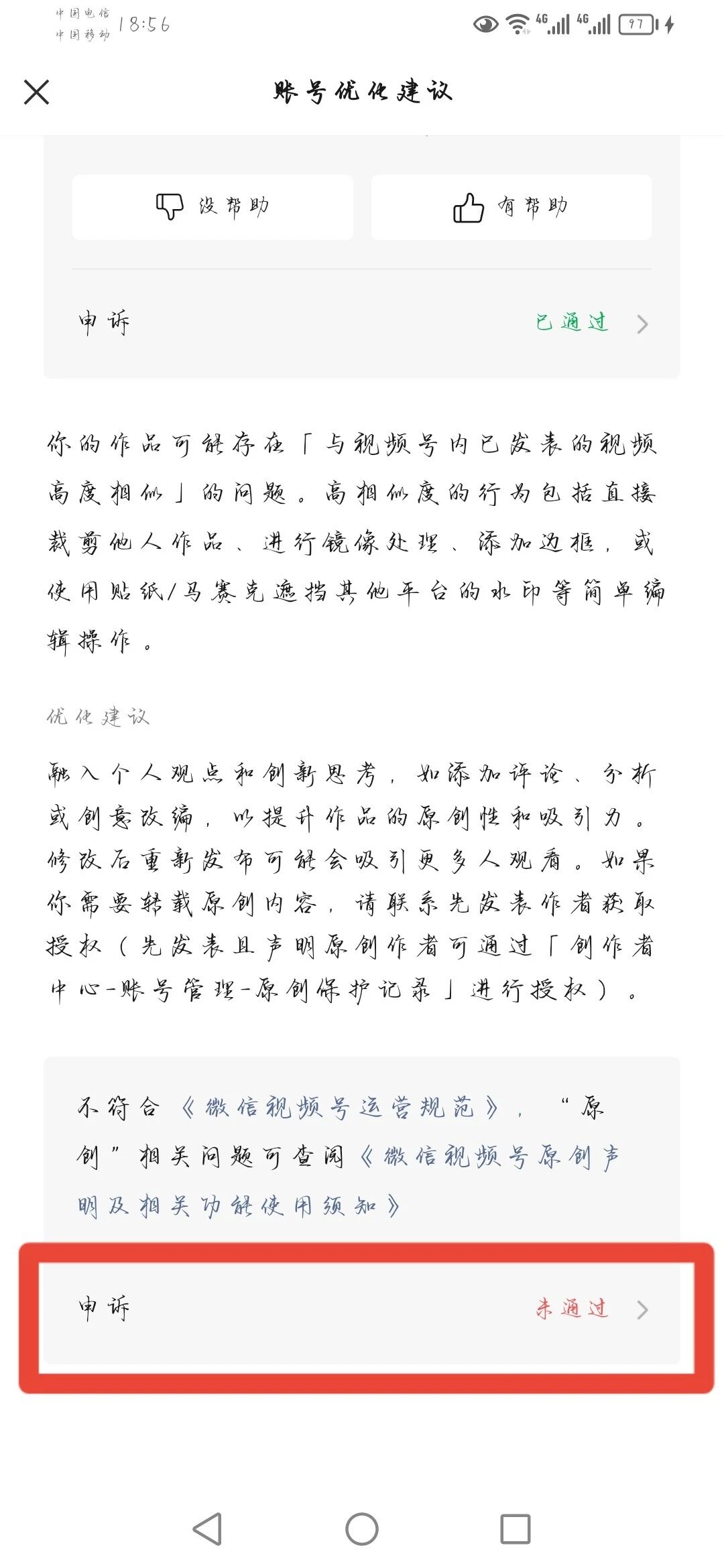 现在不要申诉了,把这个发的视频删除,然后上传原创视频,能真人出境最好