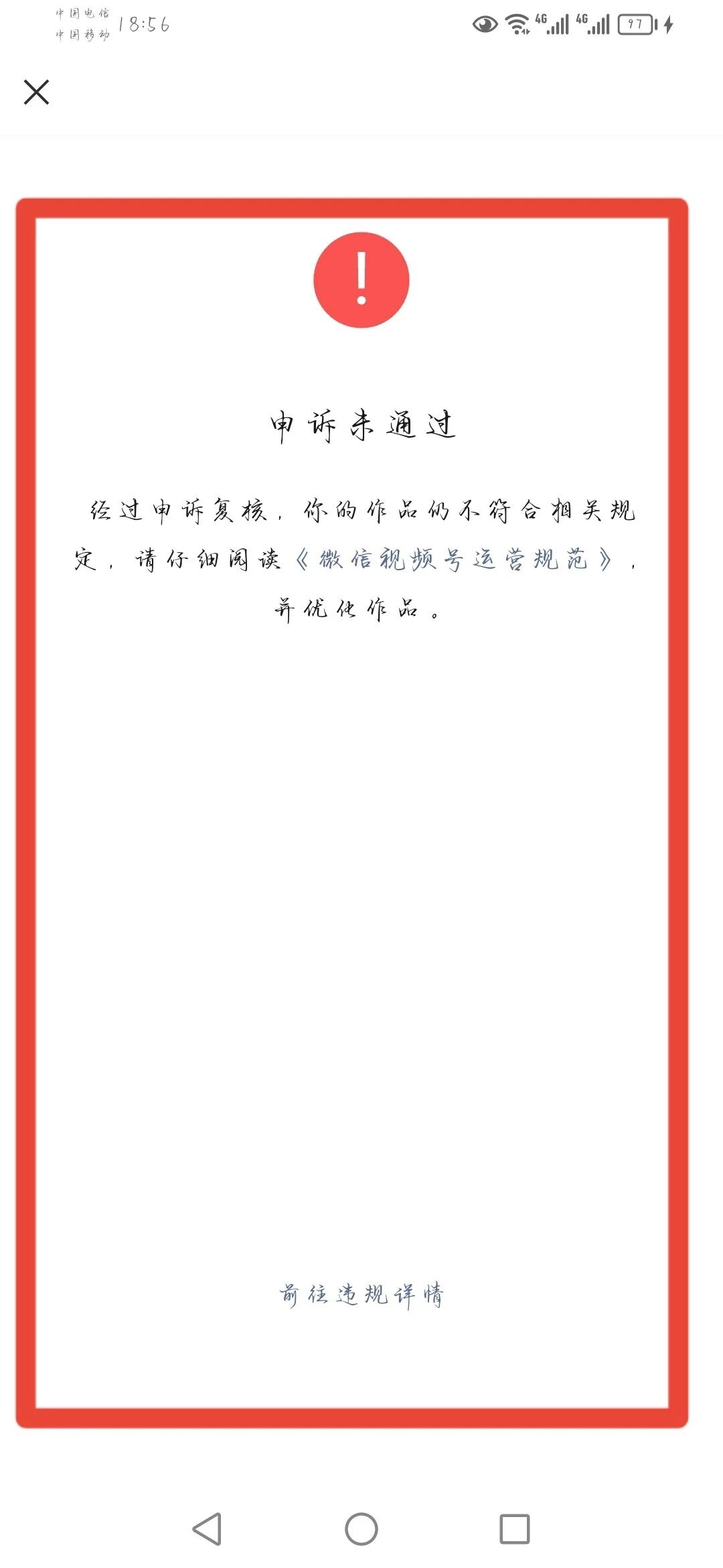 1. 视频号申诉:请前往视频号私信,轻触视频号团队下发的违规通知 > 页面下方【去申诉】,提交视频号申诉;