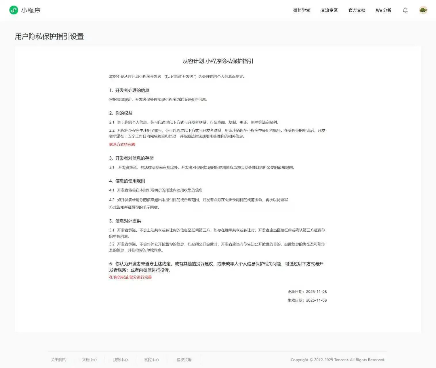 你好,设置模块的【用户隐私保护指引】更新的是现网版本,核实你的小程序还未发布过,即你小程序目前还没有现网版本【用户隐私保护指引】,建议发版后尽快完善【用户隐私保护指引】