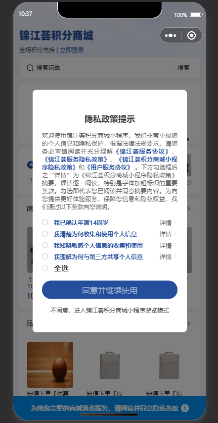 在使用小程序的快速登录功能的时候,会先弹窗微信自带的隐私弹窗,这个可以怎么去掉么,因为我们商城是有自己的隐私弹窗,不想用微信自带的