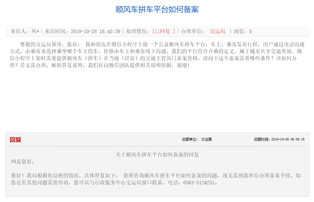 (1):你好,你的小程序涉及拼车,请补充选择:出行与交通-顺风车(拼车)类目。