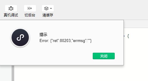 关于80203的问题已在最新的开发工具版本修复,麻烦更新试下https://developers.weixin.qq.com/miniprogram/dev/devtools/beta.html