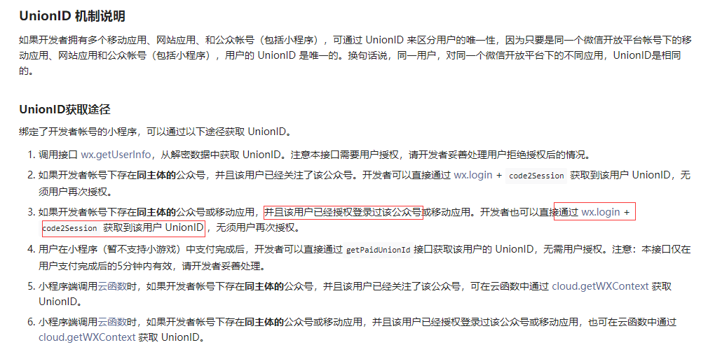 然后小程序这边通过 wx.login + code2Session 获取到该用户 UnionID