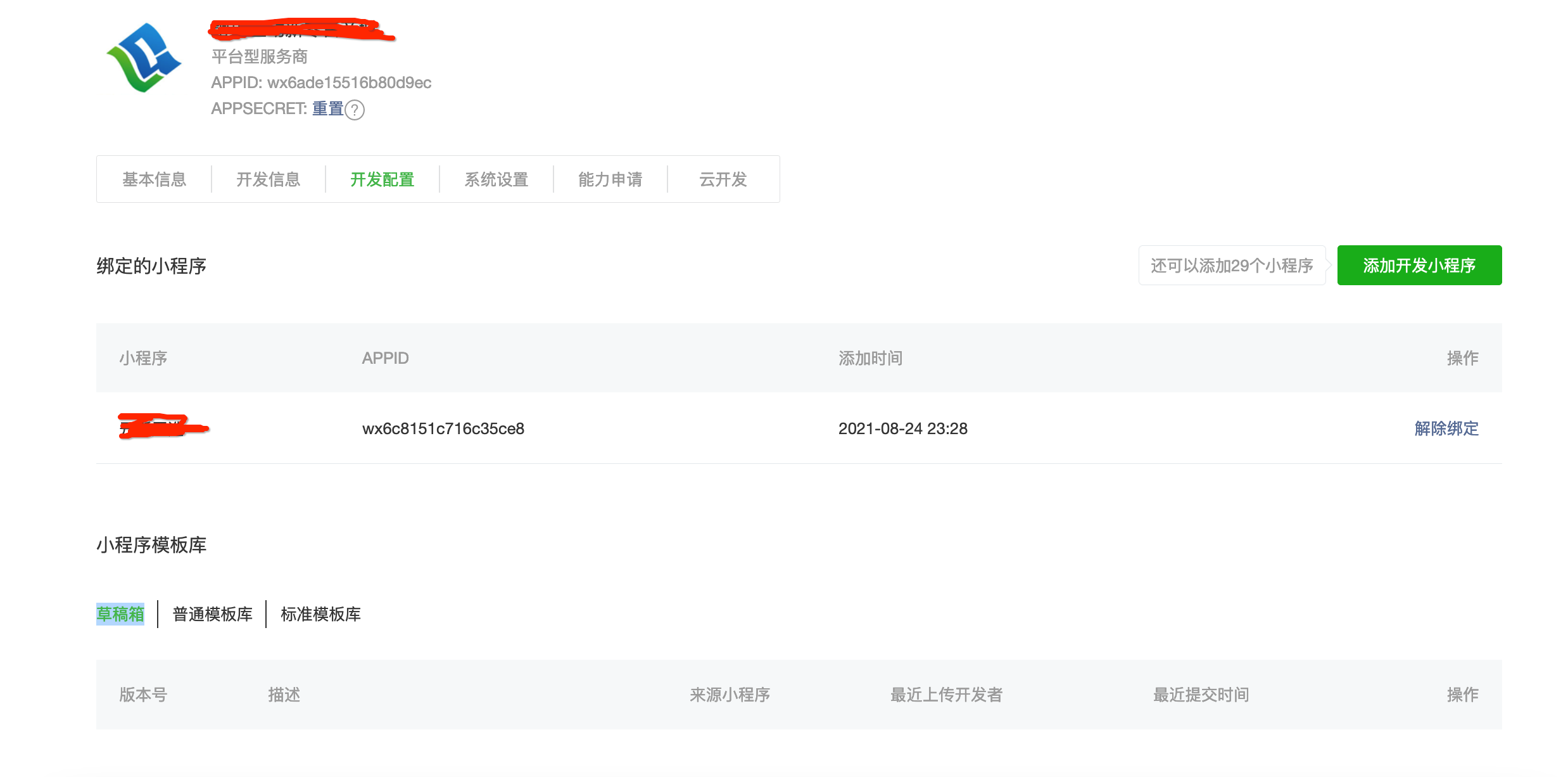 第三方平台APPID:wx6ade15516b80d9ec