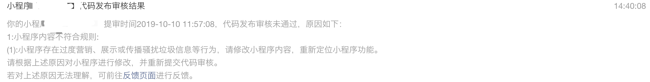你好,经核实,贵方小程序确实存在过度营销、展示或传播骚扰垃圾信息等行为,请修改小程序内容,重新定位小程序功能。