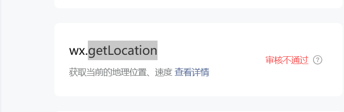 你好,核实到小程序申请wx.getLocation接口审核不通过,根据提交的申请信息可知申请该接口是用于【获取用户地理位置推荐最近的电影院以及快递柜服务】,不符合wx.getLocation接口使用场景开放范畴。建议使用wx.getFuzzyLocation、wx.chooseLocation或wx.choosePoi、wx.chooseAddress接口实现上述场景。若含有线下电影院或快递柜导航服务,可以支持wx.getLocation接口,建议提供小程序内线下电影院或快递柜导航相关截图和录屏重新提交。可参考相关案例解析:https://developers.weixin.qq.com/community/develop/doc/000646718d40a08a65ed1e2175bc09