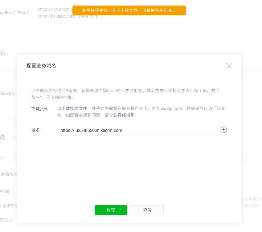 业务域名设置--校验文件检查失败自查指引https://developers.weixin.qq.com/blogdetail?action=get_post_info&docid=00084a350b426099ab46e0e1a50004