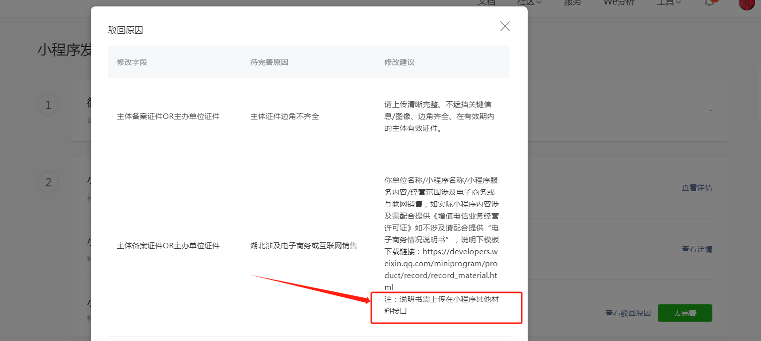 备案被驳回提示需要提供这个:“电子商务情况说明书”,这个是需要在哪里去上传?没看到有入口