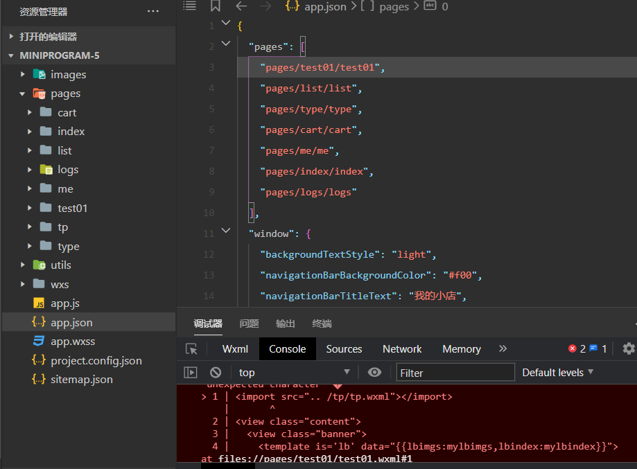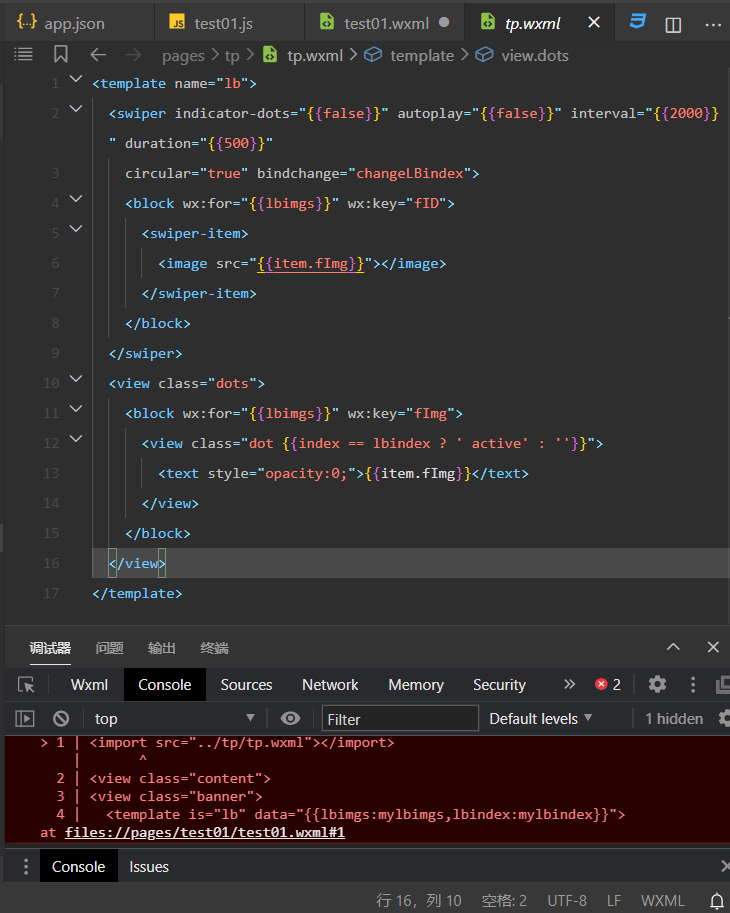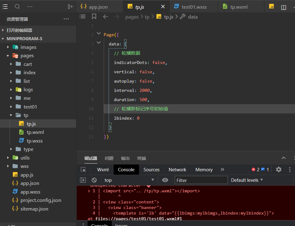 然后看看这个能不能通过ctrl+左键跳转到tp.wxml,如果不能就是配置有问题,可能是app.json里面没配置tp.wxml路径